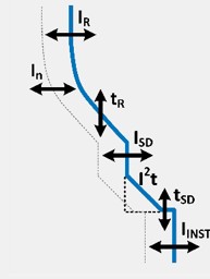 Image shows a typical I–t characteristic curve that includes both basic and advanced settings. These advanced protection concepts will be explained in one of the next articles.